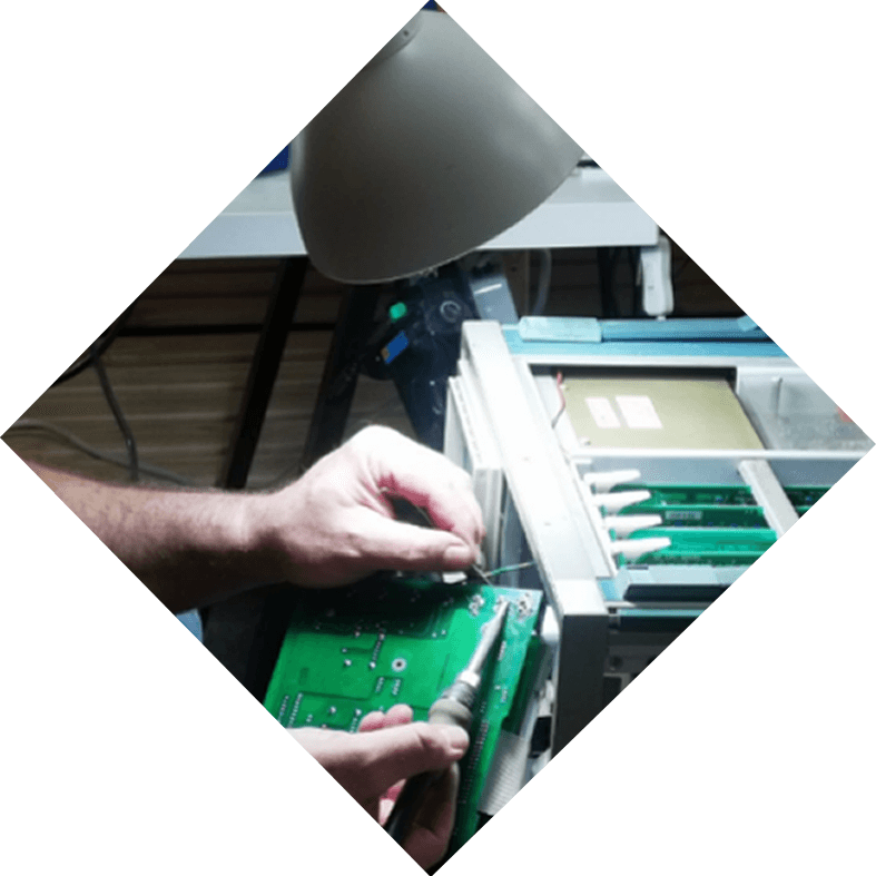專業設備擁有PCB割板機,顯微鏡及總價近千萬的電子設備,任何高階儀器皆可檢修及製作零件。